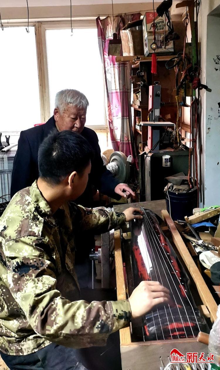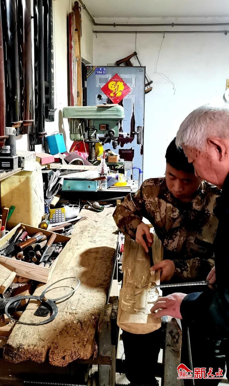 2月28日,在位于秦州区山水嘉园的天水市熊氏琴房坊,天水古琴制作技艺市级非遗代表性传承人熊尚德和张涛师徒正在制作古琴。