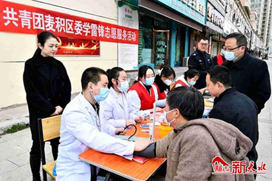 当天的活动现场,由麦积区第二人民医院、区司法局、区林草局、桥南街道天河社区、天河社区卫生服务站和新建巷小区便民服务中心等单位的医务人员、青年志愿者,为广大居民开展义务理发、健康义诊、测量体温、量血压,发放法律法规、健康教育宣传资料,充分发挥青年志愿者的引领示范带动作用,推动全社会争当雷锋精神的倡导者,用行动传播爱心,用智慧服务社会,用双手创造美好,在全区掀起“学雷锋 我行动”的热潮。