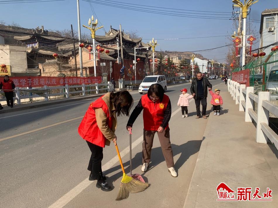 新天水讯 3月3日上午,秦安县五营镇新时代文明实践所把“学雷锋”活动和创建全国文明城市工作相结合,组织镇志愿者服务队20余人,开展“学雷锋、我行动”人居环境卫生整治活动。