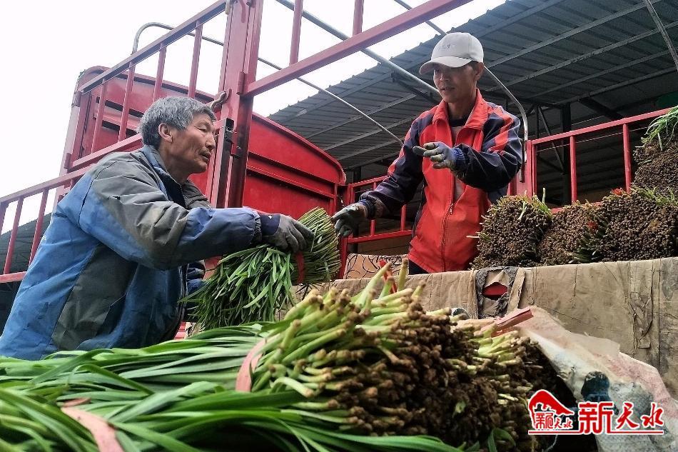 3月2日,在天水三和祥果蔬开发有限公司,甘谷县磐安镇菜农正把韭菜装车准备销往外地。