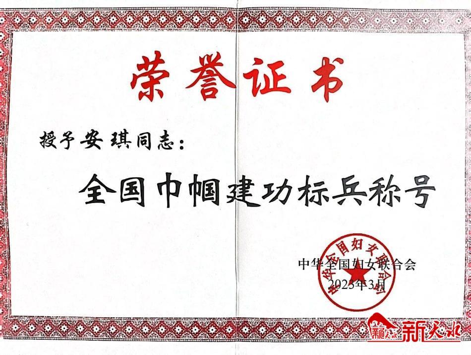 新天水讯 近日,甘肃省劳模、天水锻压机床(集团)有限公司高级技师、电焊工安琪,荣获“全国巾帼建功标兵”荣誉称号。