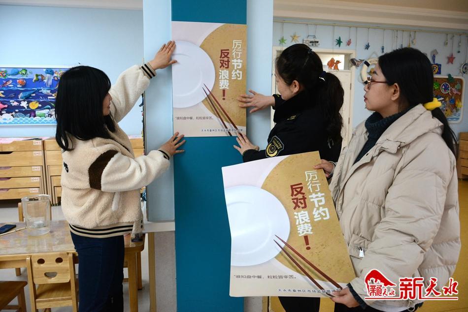 “开学前后,我们来到天水市幼儿园、秦州区玉泉中学等幼儿园、学校,在教室、食堂张贴了“厉行节约、反对浪费”“光盘行动”宣传海报,开展了制止餐饮浪费的宣传,指导食堂加强供餐环节的减损管理。”秦州区市场监督管理局食品股股长马晓鹏说。