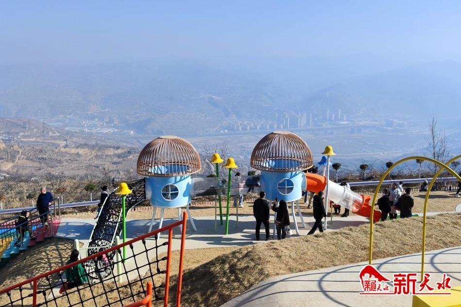 冬去春来,天气转暖,碧野草复青。近日,沿着蜿蜒产业路一路前行,记者来到秦安县千户镇杏树湾流域。坐落于山巅的杏树湾农业特色旅游园赫然出现在我们眼前,这座集彩虹大道、观景台、儿童游乐园、七月菊种植基地等为一体的田园综合体,吸引了不少游客前来打卡、游玩。
