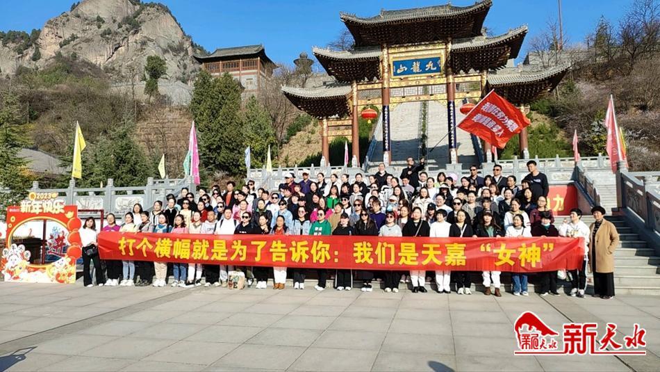 3月7日至8日,天嘉交运集团组织女员工及其亲属,在陕西省宝鸡市陈仓区坪头镇的九龙山大景区开展“三八亲情游”活动,为女职工们送上节日的问候和祝福。