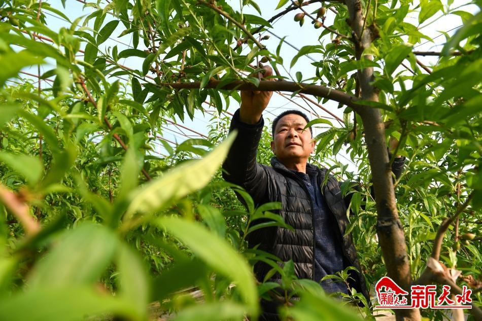 连日来,秦安县刘坪镇的万亩桃园里,随处可见果农忙碌的身影。走进杜寨村的油桃大棚,一颗颗绿油油的油桃幼果挂满枝头,果农杜万红正忙着疏果。“大棚油桃弥补了早春时令水果的空白,清明前后就能上市,很受市场青睐。”精心侍弄着这些幼果,杜万红乐得合不拢嘴。在他看来,这些小小的油桃就是生钱的“金果果”。