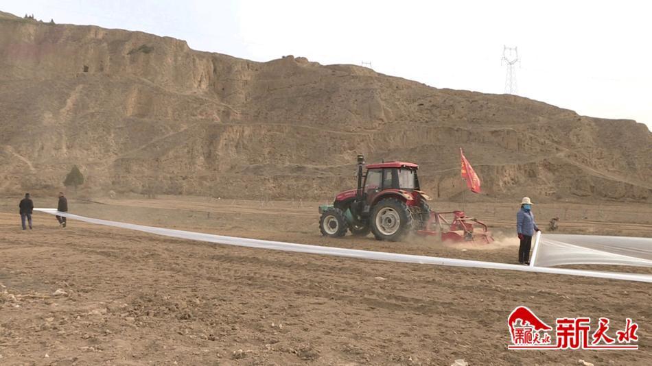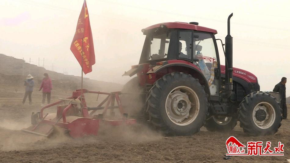 在新兴镇雒家村撂荒地整治现场,机器轰鸣、人头攒动,大型旋耕机正开足马力翻耕整地。村民们在已翻耕好的沃野上忙着拉地膜、压地膜、平整垄沟,一幅幅生机盎然的“春耕图”正在徐徐展开。据村党支部副书记张成余介绍,当前,土地流转和复耕工作已完成,撂荒地复耕后由村合作社统一托管,将进行大豆和玉米带状复合种植,进一步拓宽群众增收渠道、增加村集体经济收入。雒家村党支部副书记张成余说,雒家村党支部将以“三抓三促”行动为契机,通过村集体合作社治理撂荒地600余亩,统一经营种植玉米和大豆,秋收后,每亩土地群众可分红200元,年底村集体经济可积累至20万元。