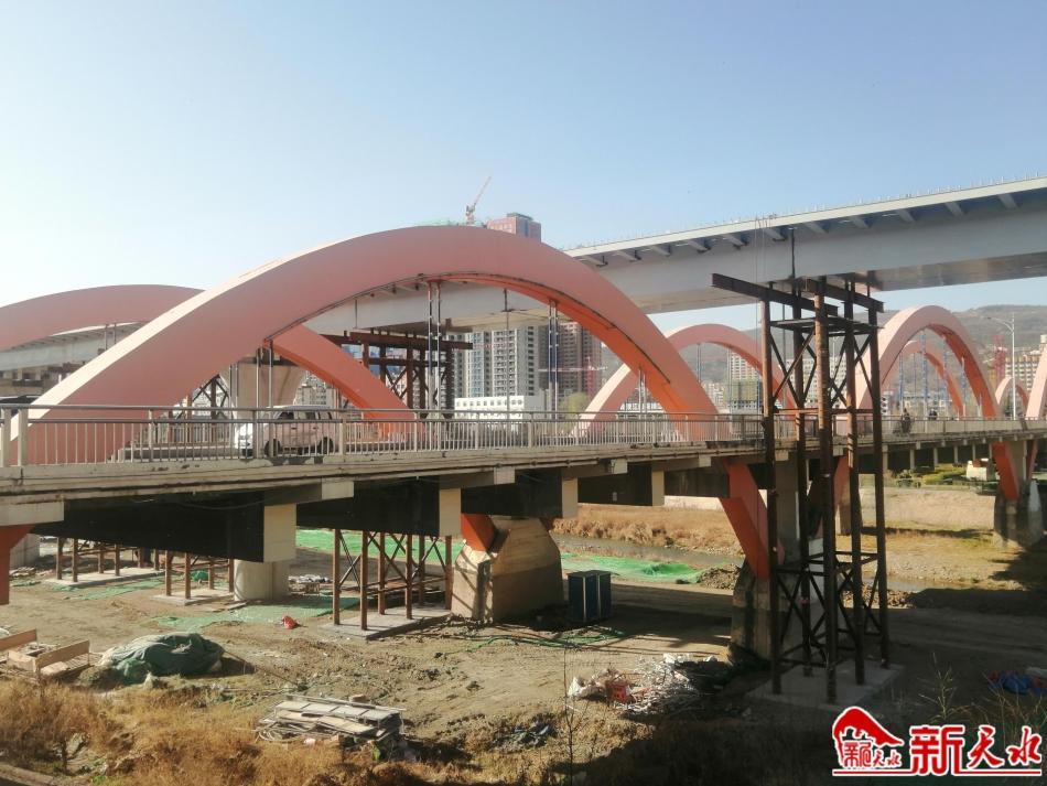 全长2921.6米的五里铺藉河特大桥,是天水市有轨电车示范线(二期)项目的关键控制性工程,主体工程其中包括由西向东分别跨红桥、迎宾桥、岷山路五里铺桥共3联钢箱梁。目前,五里铺藉河特大桥桥梁下部结构已全部完成。