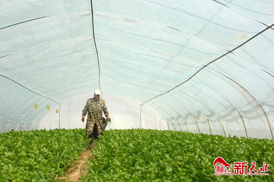 在秦州区牡丹镇绿园种植养殖农民专业合作社的蔬菜大棚内,一垄垄芹菜青翠欲滴、郁郁葱葱。