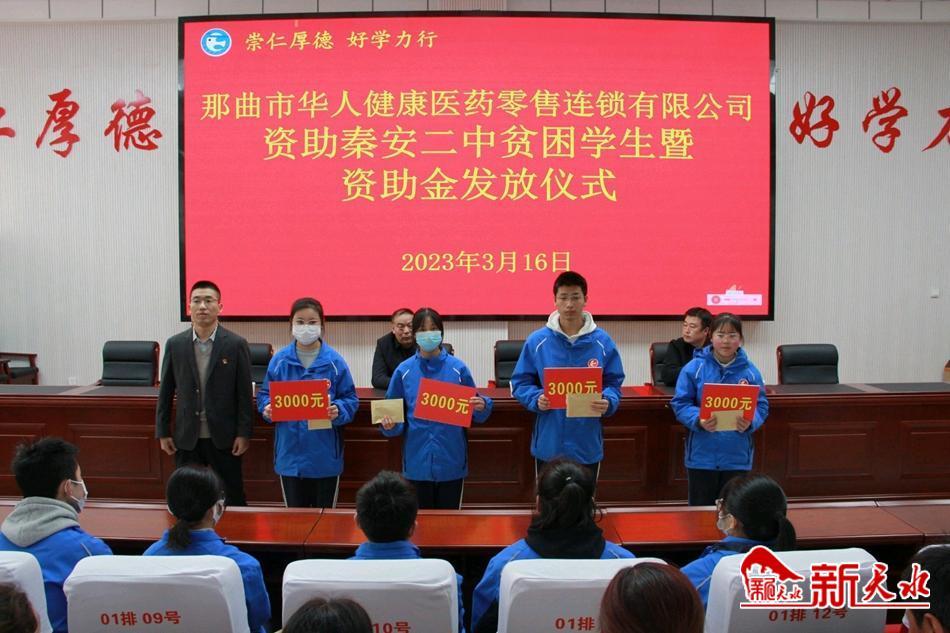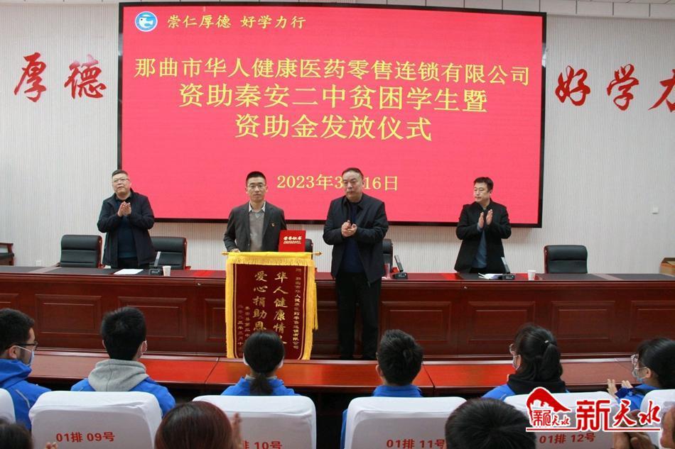 新天水讯【通讯员 刘露浩】3月16日,那曲市华人健康医药零售连锁有限公司向秦安二中特困学生捐赠3.2万元。