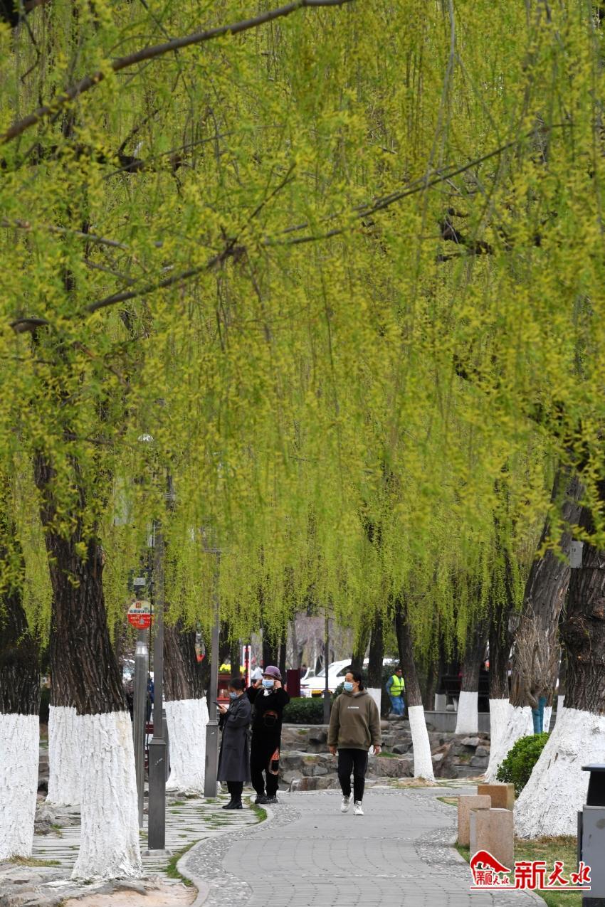随着气温逐渐回升,春天的气息扑面而来。3月21日,天水湖、人民公园等地柳丝渐绿,桃花、迎春花、丁香花等竞相开放,不少市民携家人踏青赏花,享受美好春光。