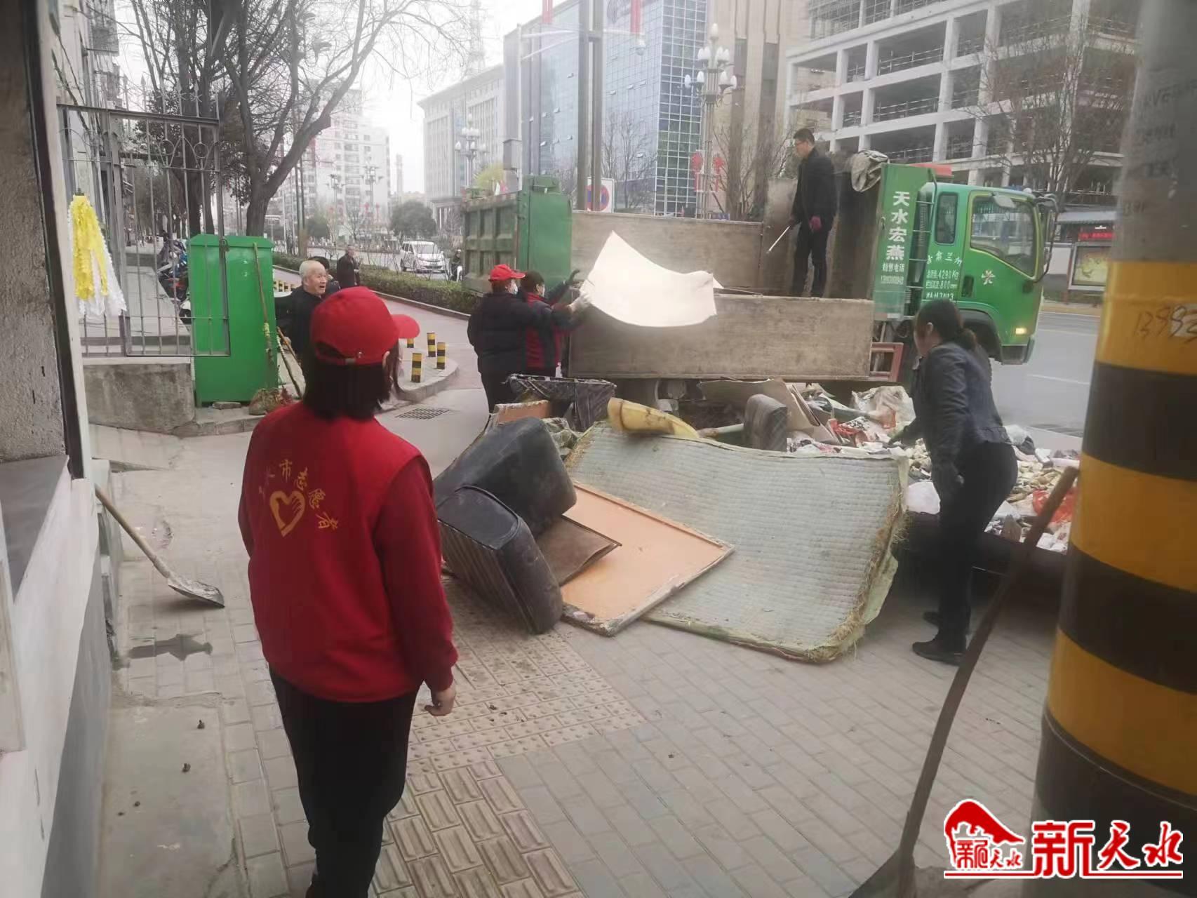 莲园社区在天北小区开展了卫生清理大扫除,对常年无人认领的杂物、旧家具全部清理,辖区内卫生死角进行了一次彻底的整治。