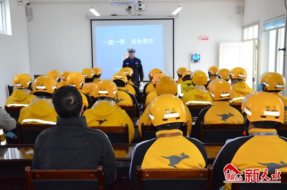 新天水讯【记者余碧波】为进一步规范辖区外卖行业交通安全管理工作,提升外卖骑手的交通安全意识,从源头上预防和减少外卖骑手的交通事故,3月23日,张家川回族自治县公安局交警大队以“三抓三促”行动为抓手,组织开展了“一盔一带 安全常在”交通安全主题宣传活动,为36名外卖骑手送上“交通安全套餐”。