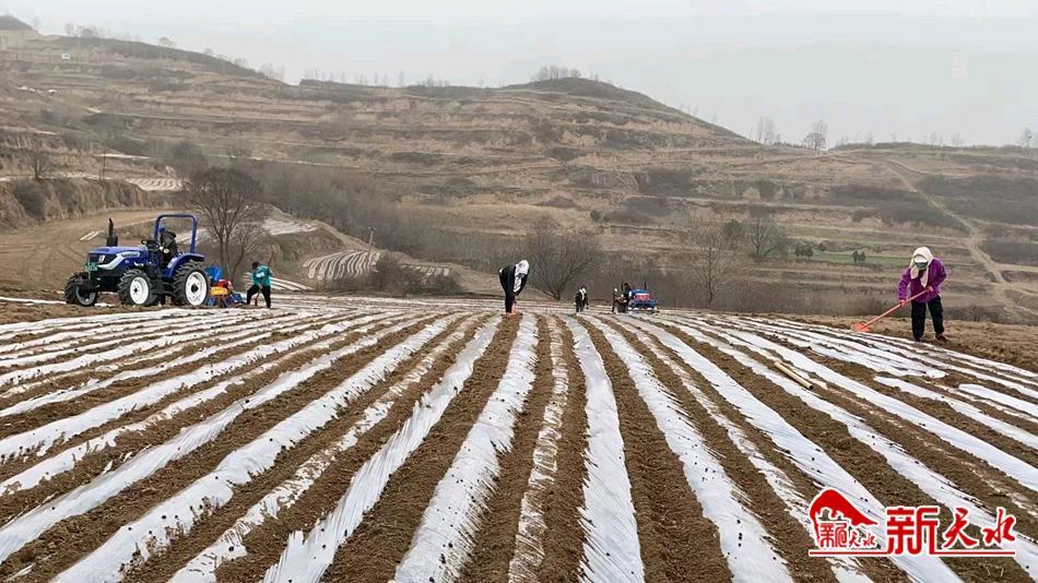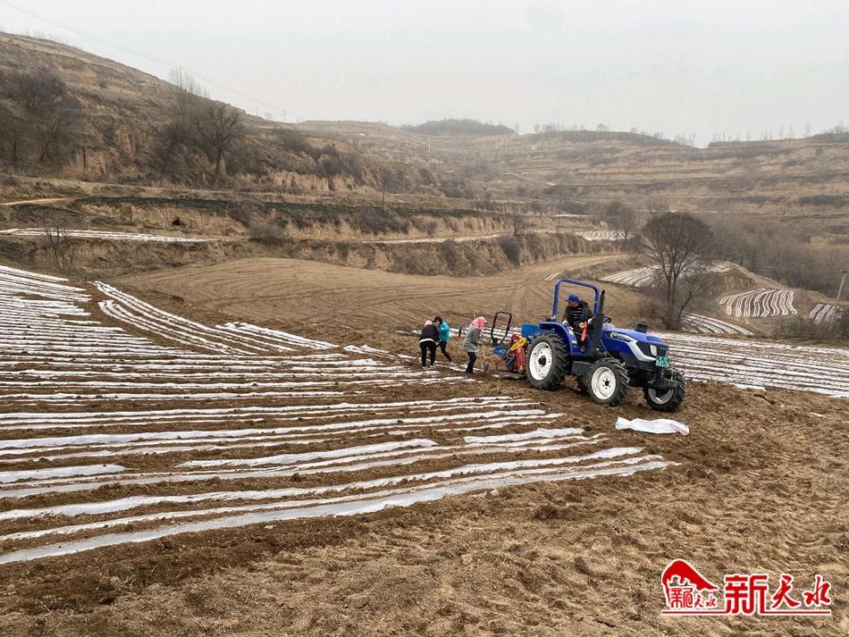 新天水讯【通讯员石建云 冯杰】连日来,秦安县中山镇党委、政府组织党员干部群众、种植大户、种植能手,每天出动各类农机机械和工程机械10台,在黄树湾流域大豆玉米带状复合种植基地开展翻地、旋地、施肥、覆膜等工作,同时,对产业路进行砂化。目前,已整理土地1000余亩,覆膜600余亩,产业路砂化1.5公里。