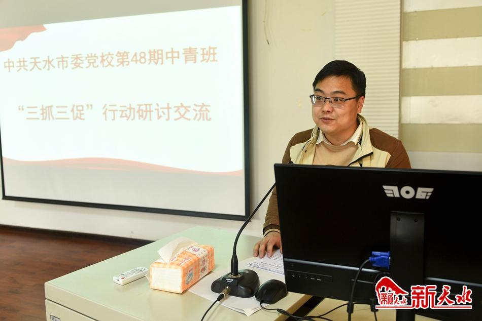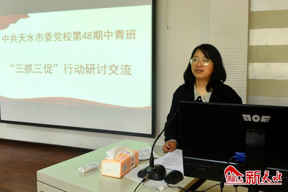 新天水讯【记者辛闻】3月29日下午,天水市委党校第四十八期中青年干部培训班举行“三抓三促”行动交流研讨会,5位学员把自己摆进去、把工作摆进去、把职责摆进去开展了交流研讨。