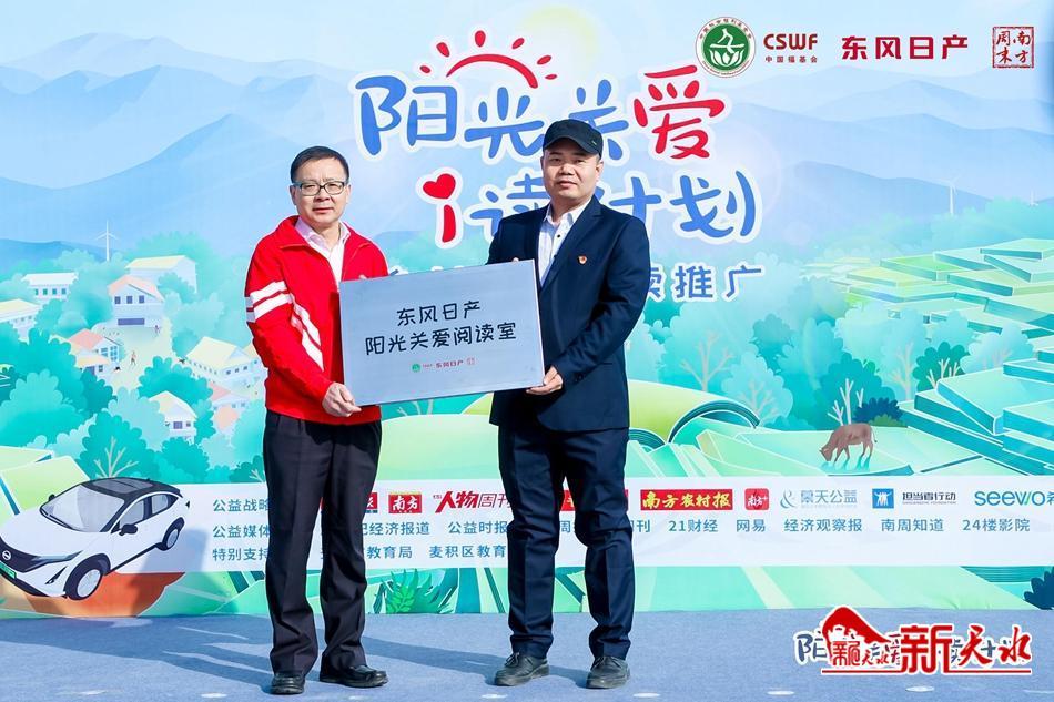 新天水讯【记者张文都】3月29日,春光明媚,2023年“阳光关爱·i读计划”公益活动走进麦积区元龙镇井儿小学。东风汽车有限公司副总裁、东风日产乘用车公司中方总经理高国林,南方周末党委副书记、总经理姚伟新出席活动,举办方代表高国林向校方代表授牌,宣布井儿小学的“东风日产阳光关爱阅读室”正式启用。