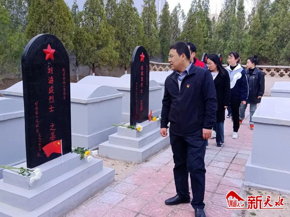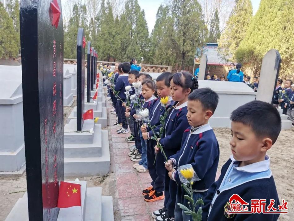 最后,全体人员前往甘谷县烈士陵园开展“缅怀先烈志·共铸中华魂”烈士陵园祭扫活动。苍松翠柏掩映下的烈士陵园庄严肃穆,在老师的引导下,孩子们排着整齐的队伍,手持鲜花,依次走进烈士陵园,绕碑瞻仰,将手中的鲜花敬献给革命先烈。