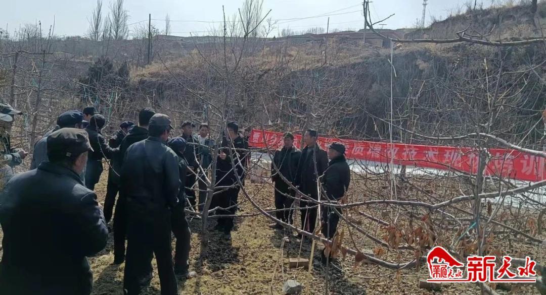 新天水讯 近期来,为打好果园生产第一仗,确保今年果业高质高效发展开好头、起好步,清水县贾川乡抢抓农时,早谋划、早安排,积极组织农技人员走进田间地头开展技术指导,全面吹响春季果园管理号角。