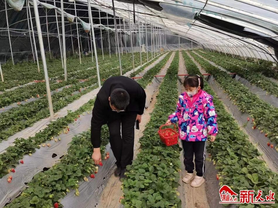 日前,走进位于秦州区玉泉镇李官湾村的花舞南山草莓采摘大棚,一排排草莓长势喜人,绿油油的叶子间点缀着一颗颗红彤彤的果实,草莓特有的清香沁人心脾,闻香而来的游客们徜徉在“莓海”中自在地享受着采摘的乐趣。