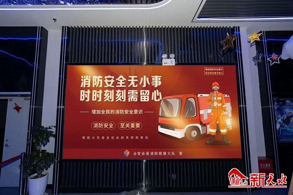 新天水讯【记者蔚军平】近日,天水市首家“火焰蓝”消防主题放映厅在甘谷县永利激光影城亮相,此次“火焰蓝”消防主题放映厅冠名,旨在有效提升影院从业人员和广大市民的消防安全意识,夯实消防宣传教育工作基础,进一步激发消防救援人员投身消防救援事业的工作热情。