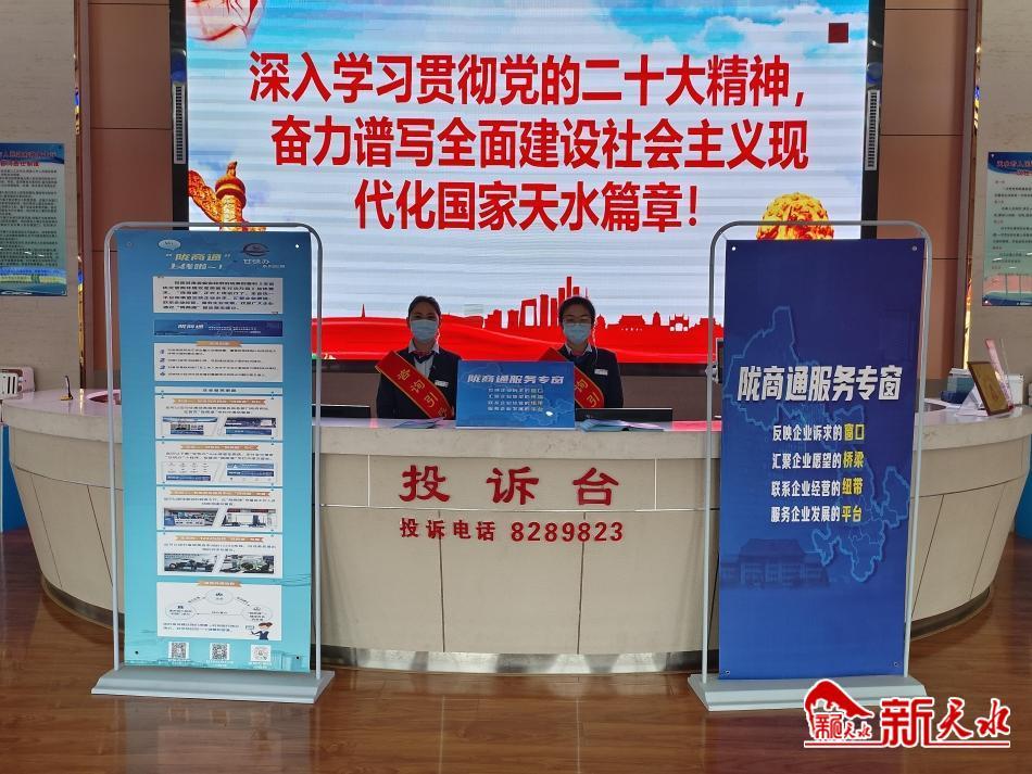 为深入贯彻落实全省优化营商环境攻坚突破年行动和“三抓三促”行动要求,天水市政府政务大厅按照全省统一部署,在市、县(区)政务中心、分服务厅开设13个“陇商通”服务专窗,配备26名专窗工作人员,负责引导企业在“陇商通”专窗办理相关的咨询、建议、投诉等业务。同时,在甘肃政务服务网天水子站、甘快办APP等客户端开设“陇商通”服务专区,实现了通过全省统一平台和“陇商通”服务专窗“线上线下”汇聚企业信息、了解企业愿望、反映企业诉求,解决企业反映问题的多渠道办理。