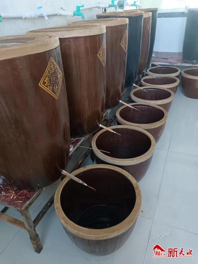 新天水讯 仲春闰月,春风拂面。走进武山县四门镇四门村集体食醋作坊,温暖和煦的阳光铺洒在晾晒的醋糟上,空气中弥漫着浓郁的醋香,工人们正在忙着拌曲,十几个醋缸里发酵好的香醋正在嘀嘀嗒嗒流出。