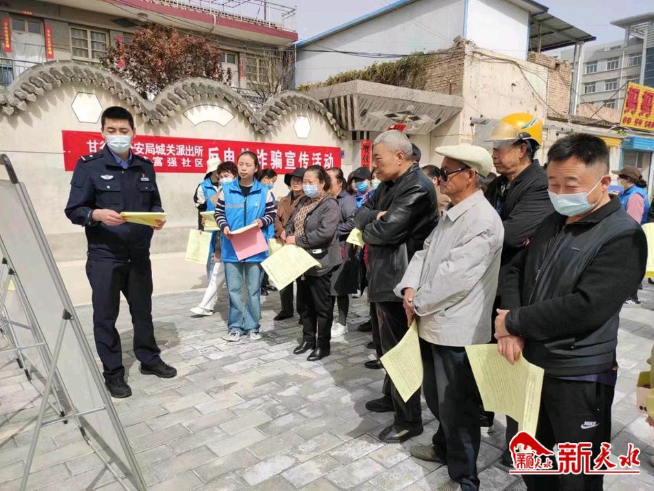 为全面提高居民群众防诈、识诈、反诈能力,从源头预防和控制电信诈骗案件发生,大像山镇各村(社区)联合派出所民警,创新形式、突出重点,多层次、多渠道开展防范电信网络诈骗宣传活动。派出所民警揭露各种常见的电信诈骗套路和手法,村社工作人员和网格员向居民发放《电信网络诈骗最新骗术》宣传单,帮助群众下载“国家反诈中心APP”和天水“金钟罩”APP,志愿者通过小喇叭提醒居民要端正心态,不要“贪小便宜吃大亏”。