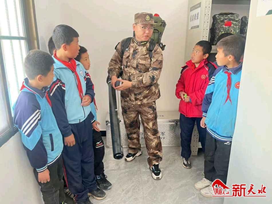 新天水讯 4月12日,清水县红堡镇双拥办联合退役军人服务站和人民武装部共同组织开展了国防教育进校园活动。镇国防教育讲解员深入到红堡镇中心小学给同学们从意识形态、科技经济等方面深入浅出、生动形象地阐述了国防知识。