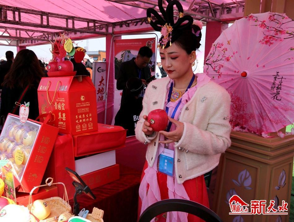 秦安县贵园宏果业有限公司总经理董晓梅说:“我们带来的展销品有水晶红富士、黄香蕉苹果,仅仅半个小时,就销售出去了二十多箱,接下来我们会把更好的展品展示给大家。”
