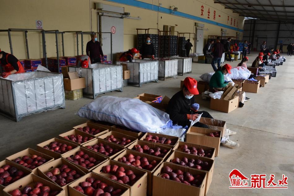 在他的身后,十几名妇女忙着分拣刚从气调库里拉出的花牛苹果,打开保鲜袋,一股花牛苹果特有的香甜味扑鼻而来,虽然经过几个月的贮藏,果品色泽依然鲜艳如初。经过分拣、套袋、装箱等工序,这些芳香诱人的天水花牛苹果将走向郑州、上海、成都等城市的重点批发市场和超市。