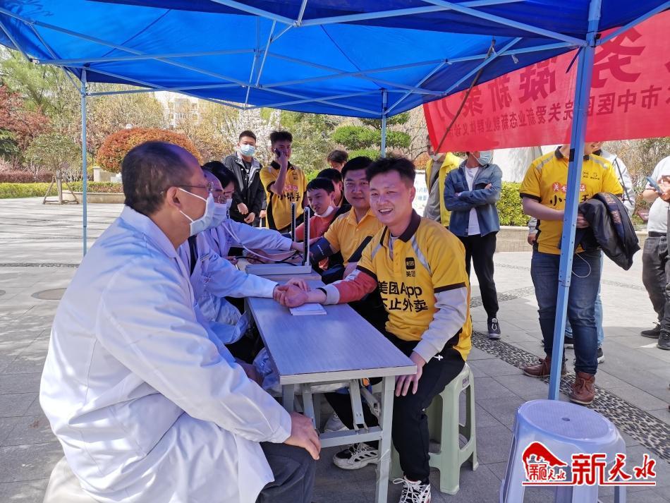 此次活动分上午、下午两个阶段进行。在上午的活动中,聘请了天水市新业态、新就业群体法律顾问,邀请有关方面专家作了交通安全知识、普法宣传教育、心理健康讲座,组织签订了交通安全承诺书,并为参加活动的货车司机、外卖小哥、快递配送员代表发放了爱心礼包,让新就业群体充分感受到党的温暖和关怀。下午,在市人民公园为广大快递、外卖小哥和货车司机朋友开展健康义诊服务,市中医医院的医护人员针对新业态、新就业群体生活作息特点,通过测量血压、血糖、把脉问诊,有针对性地解答大家的健康问题,并结合他们身体状况,提供合理化建议和职业健康指导,让广大新就业群体感受暖心服务。