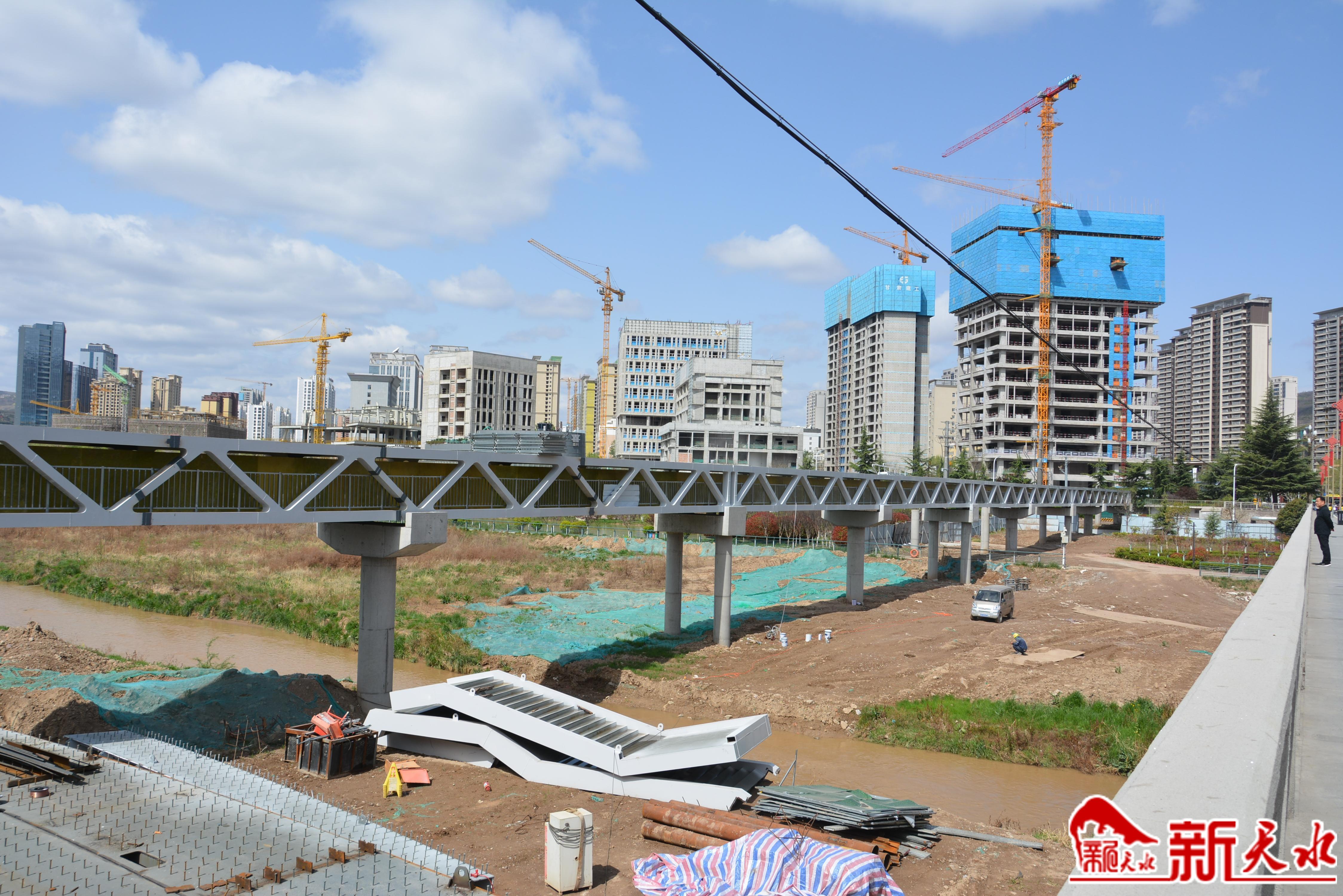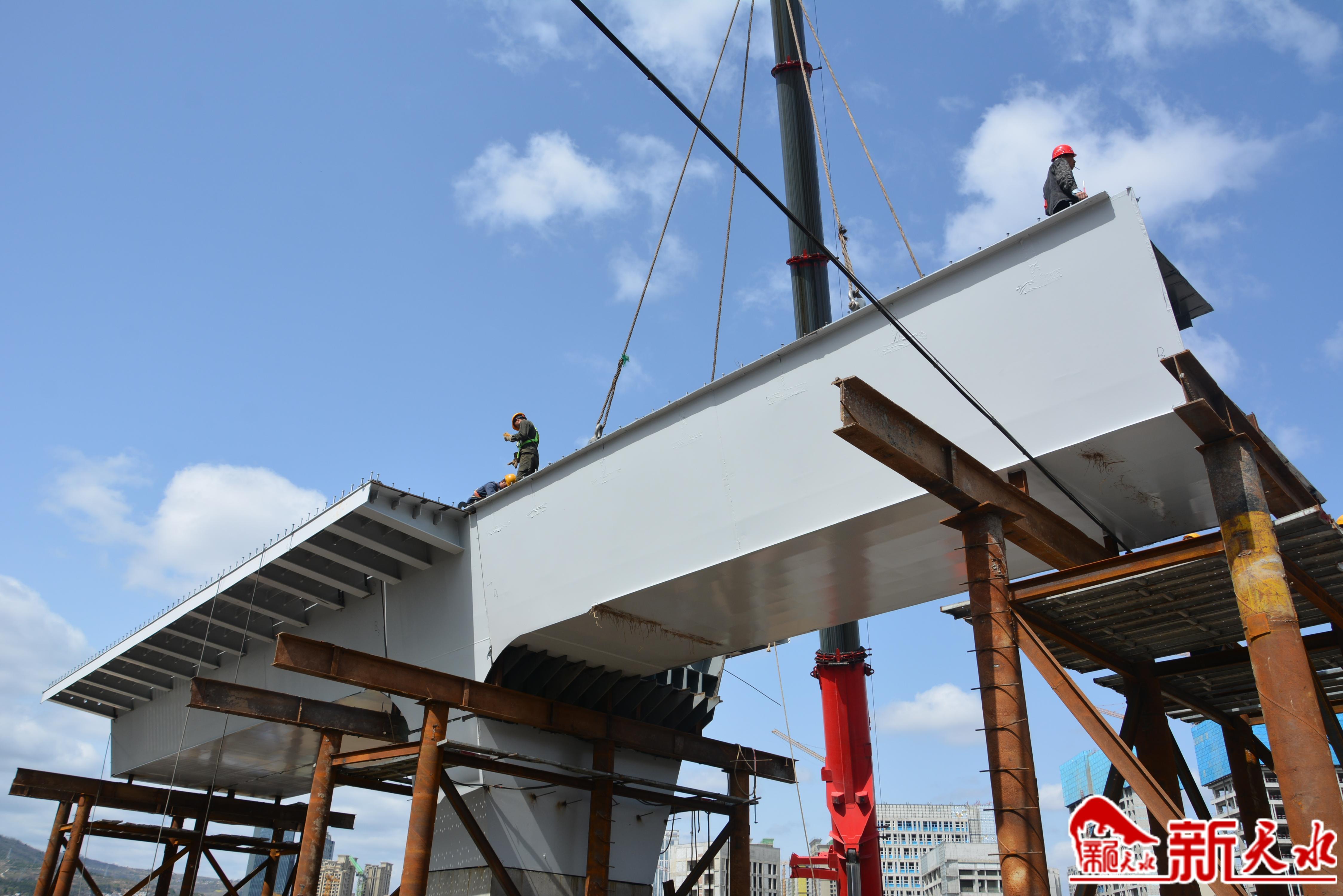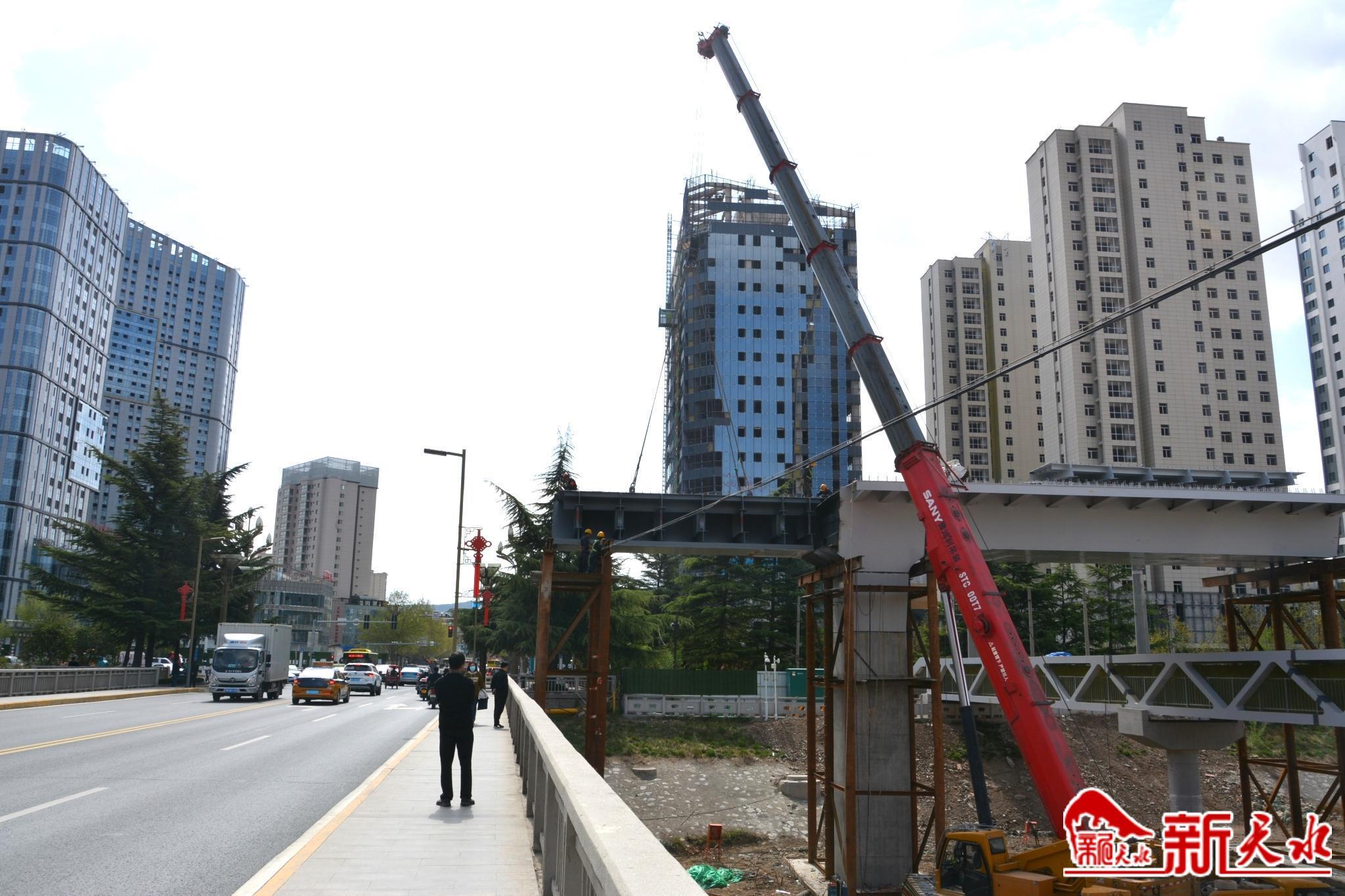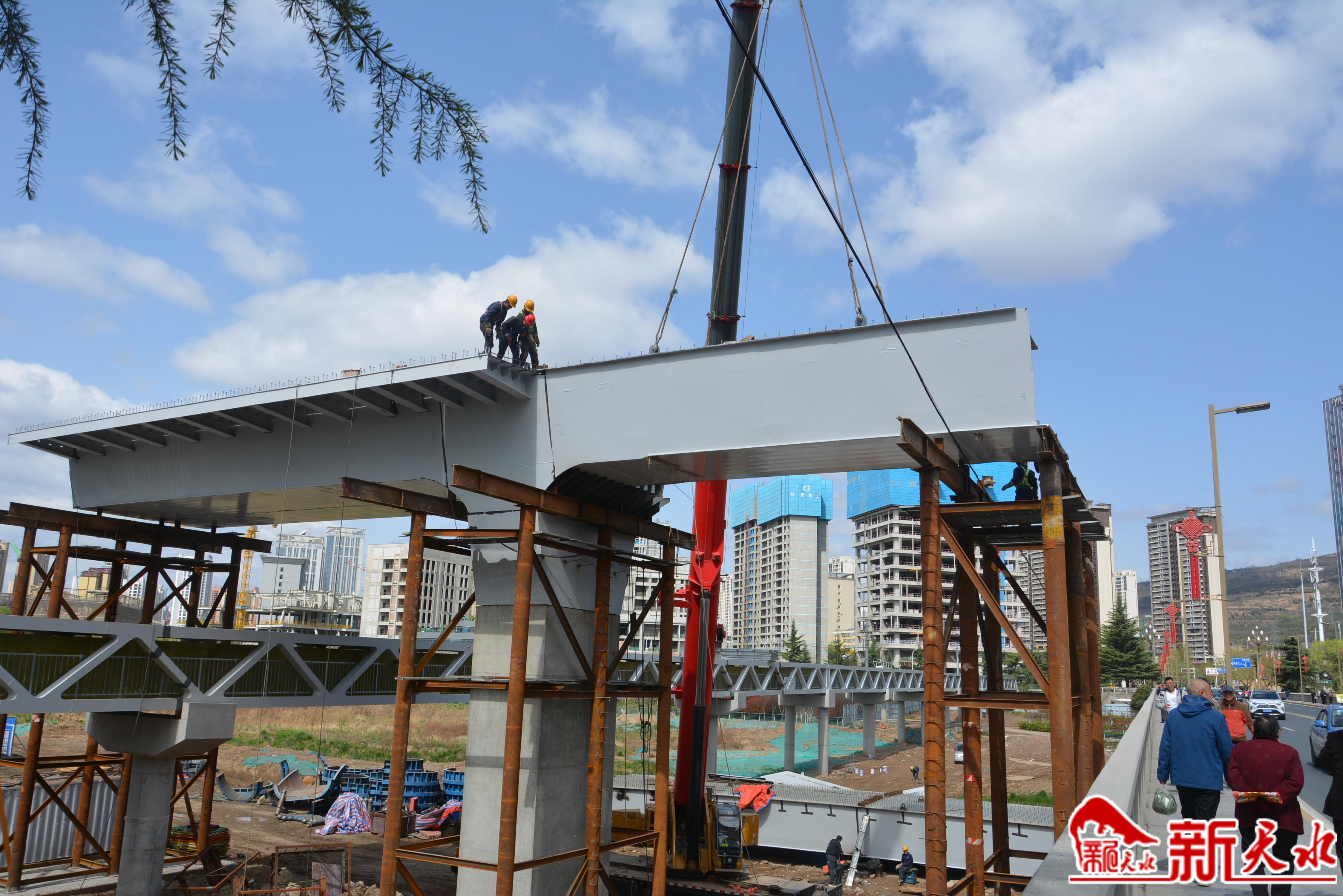 上跨五里铺桥 天水有轨电车藉河特大桥开始架设最后一联钢箱梁