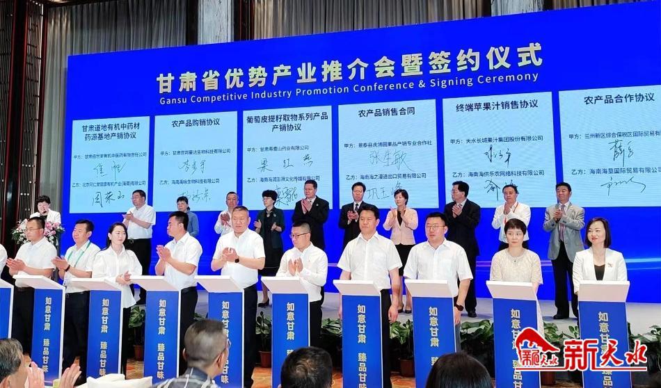 展会期间,甘肃省成功举办甘肃省优势产业推介会暨签约仪式,甘肃省商务厅副厅长黄霓推介甘肃省优势产业。会上,天水长城果汁(集团)有限公司同海南海供乐农网络科技有限公司签订价值1000万元的终端苹果汁销售协议。
