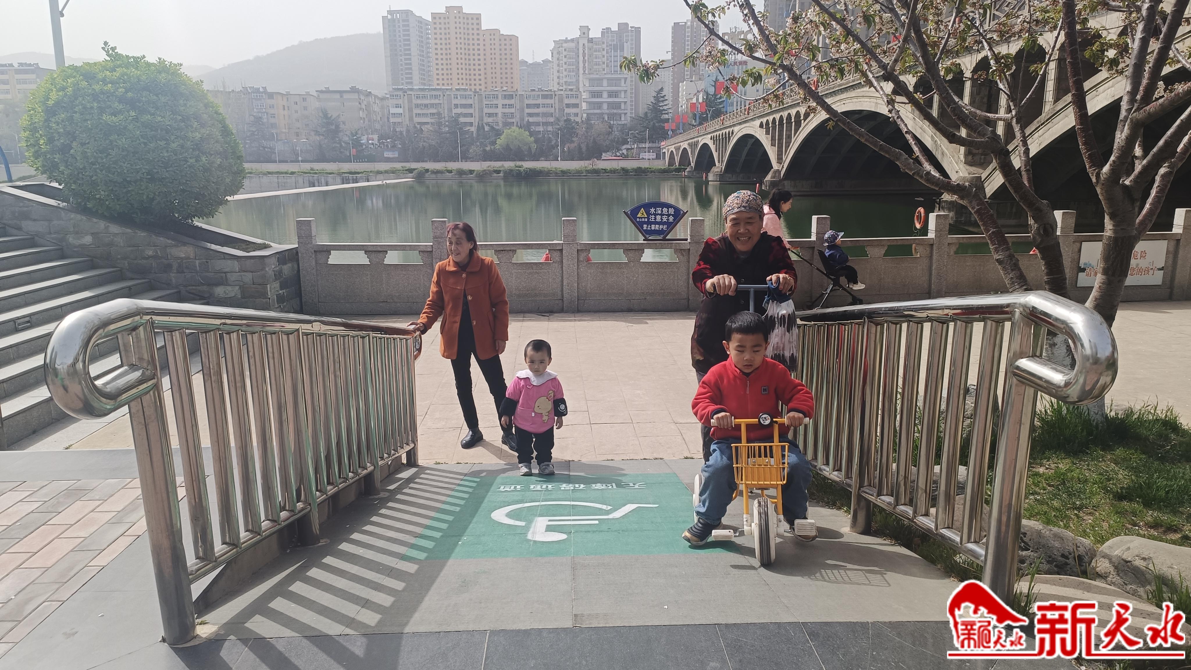 “现在非常方便,以前带孩子出来玩遇到台阶、道牙时,只能将婴儿车抬起来才能通过,现在到处都有这样的斜坡,我一个人就可以推着车子带娃来户外游玩,方便又轻松。”4月18日,在秦州区南大桥附近的藉河风情线上,市民马女士带着孩子在湖边散完步后,通过一处标有绿色“无障碍通道”标识的斜坡,很轻松就从河堤边走了上来。