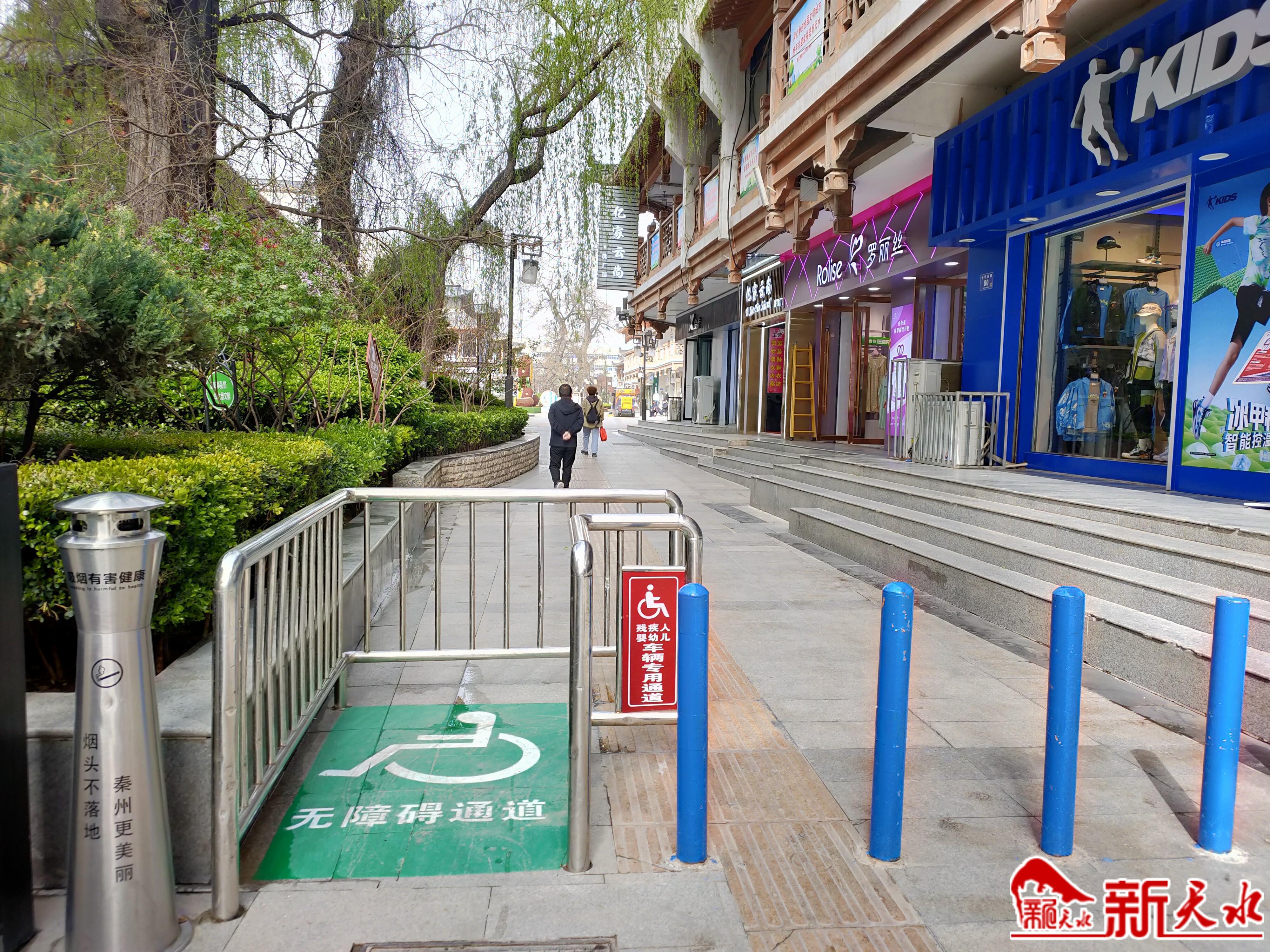 随后,记者来到秦州区中华西路步行街、民主路以及一些巷道看到,大部分公共区域都设置了无障碍通道,供电公司、银行、商超等公共场所门前也建了无障碍坡道、扶手栏杆等多处无障碍设施,为残疾人、老年人等群体的出行创造了较为便利的条件。