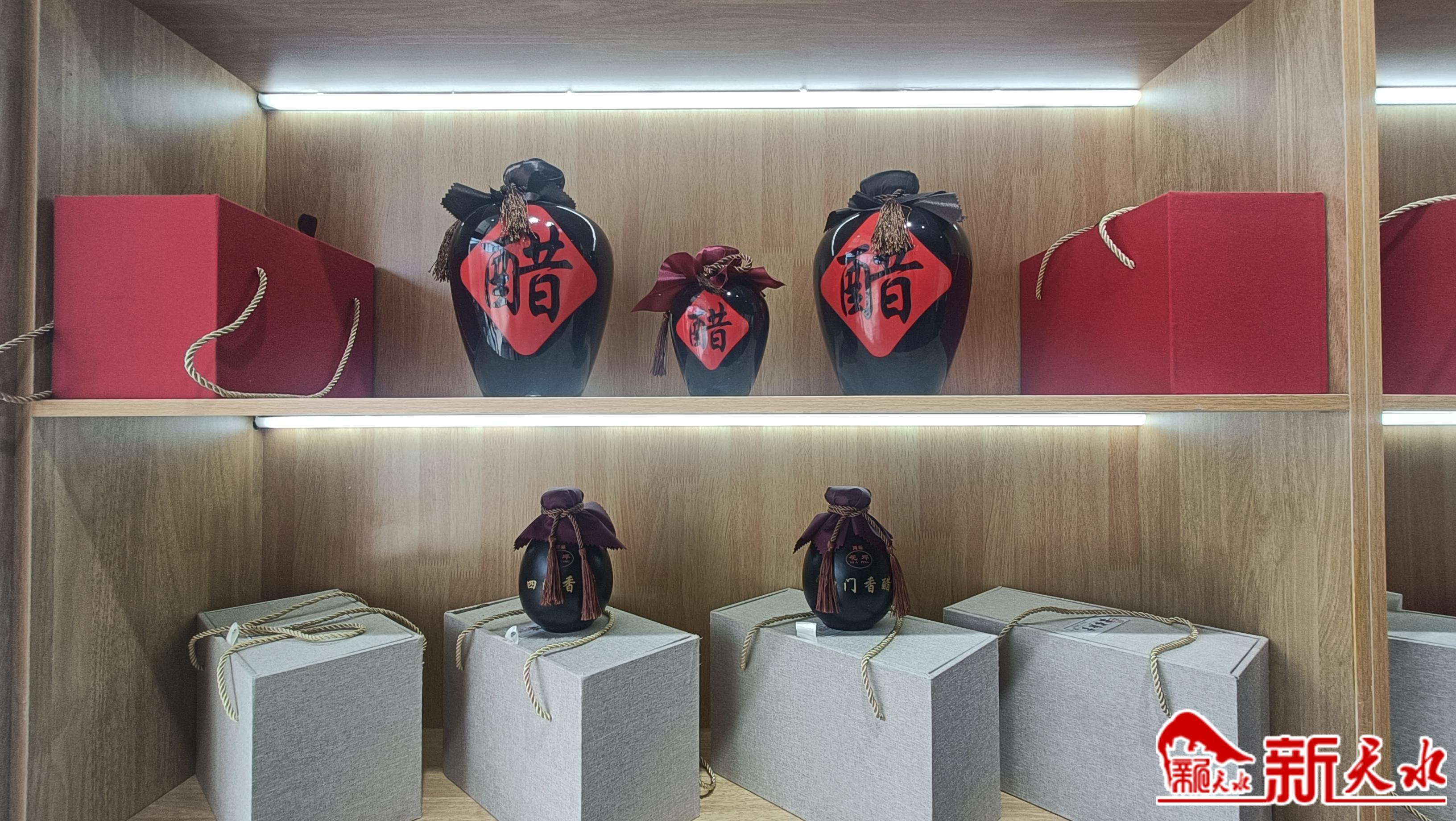 深厚的食醋文化、详细的酿造流程、古朴的工艺展示……走进四门镇政府隔壁的四门香醋展厅,醇香的醋味扑鼻而来,一个个造型独特的醋罐子摆放在展架上,几口醋缸与食醋发酵池、小型淋醋设备为展厅增色许多。