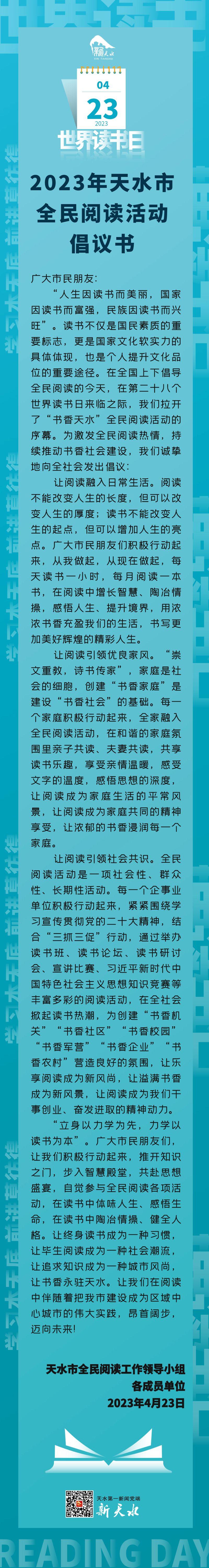 微海报 | 2023年天水市全民阅读活动倡议书