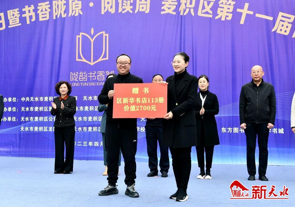 启动仪式上,区图书馆阅读推广人代表宣读了《麦积区全民阅读倡议书》,区新华书店、东方图书城、博学书城为区图书馆赠书共计395册,价值8795.7元。