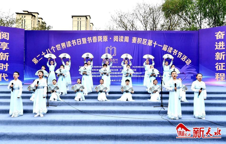 新天水讯【特约通讯员 窦耀辉】4月23日,由麦积区委宣传部、区文体广电和旅游局、区教育局主办,区图书馆、区文化馆、区新华书店承办的第28个世界读书日暨“书香陇原·阅读周”暨区第11届读书节活动在风景如画的马跑泉公园西广场举行。本次活动以“阅享新时代、奋进新征程”为主题,标志着麦积区2023年全民读书活动正式启动。