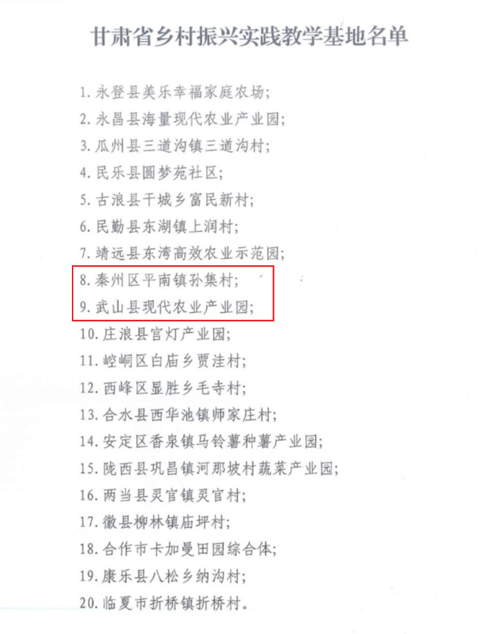 甘肃评选认定省级乡村振兴培训基地和实践教学基地!天水3地入选