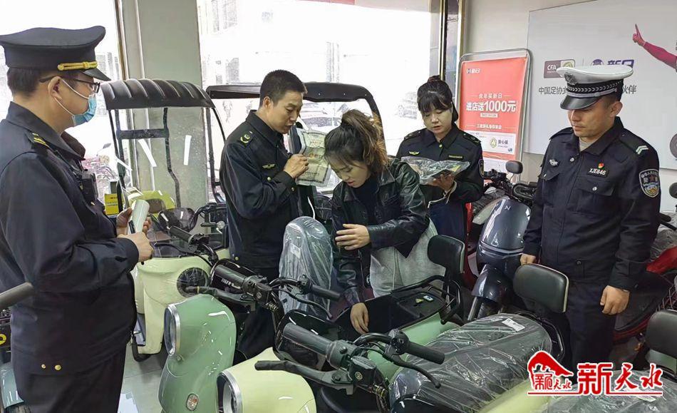 同时,检查组积极为广大销售商户们答疑解惑,并要求各销售商户:严禁销售未经国家机动车产品主管部门许可生产的车辆;要告知消费者购买“新国标”电动车后一定要经公安机关交通管理部门注册登记,核发号牌后方可上道路行驶;要积极向群众宣传如何区分“新国标”电动自行车、电动(轻便)摩托车、电动摩托车;四是要提醒驾乘人员出行时要佩戴好安全头盔,自觉遵法守规、安全文明出行。