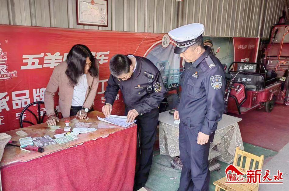 新天水讯【记者 余碧波】为全面推进“三抓三促”行动走深走实,进一步规范辖区电动车市场经营秩序,切实维护广大消费者的合法权益,有效减少道路交通安全隐患,4月26日,张家川回族自治县公安局交警大队联合县市场监督管理局走访检查辖区电动车商铺。