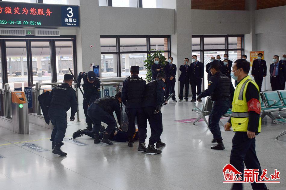 原来,“五一”将至,为进一步加强人口密集区反恐防暴力度,持续开展打击违法犯罪行为,全面提升特警队员应对突发警情的整体联动、快速反应和警务实战化水平,天水市公安局麦积分局反恐大队特意联合铁路派出所在天水火车站开展反恐防暴应急处突演练。