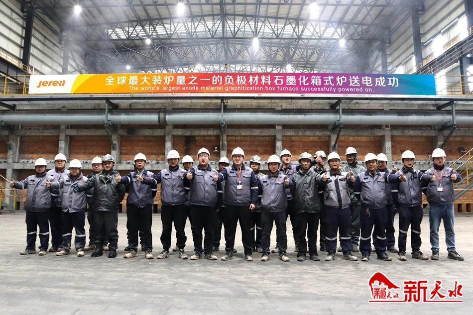 此次成功送电的箱式炉,是杰瑞新能源公司天水项目建成后实现点火的第一台箱式炉,也是全球最大装炉量之一的负极材料石墨化箱式炉,装炉量达220吨。