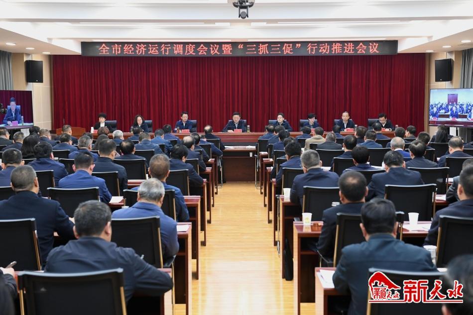 新天水讯【记者马放】4月27日下午,天水市经济运行调度会议暨“三抓三促”行动推进会议召开,市委书记冯文戈出席会议并讲话。他强调,要深入学习贯彻党的二十大精神,全面落实党中央、国务院决策部署和省委、省政府工作要求,坚持“拼”字当头、“干”字为先,奋起直追、苦干实干,全力以赴挖潜力、增效益、促发展,持续深入开展“三抓三促”行动,全力奋战二季度,确保实现“双过半”。