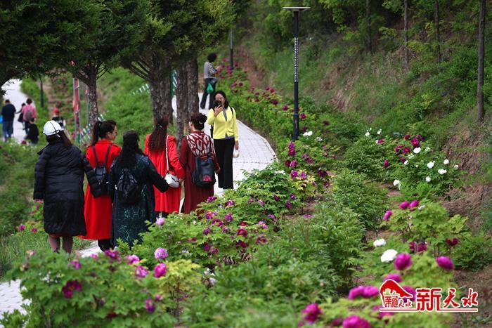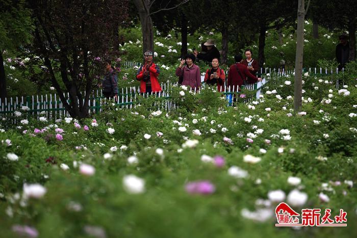 该园种植洛阳红、大胡红、肉芙蓉、兰田玉梨花雪等40多个牡丹品种。每年到春季盛花期,各色牡丹竞相绽放,争奇斗艳,吸引市民前来“打卡”观赏,踏青留影。(记者李旺旺 摄)