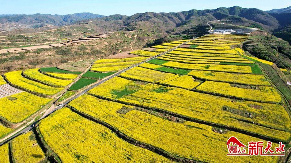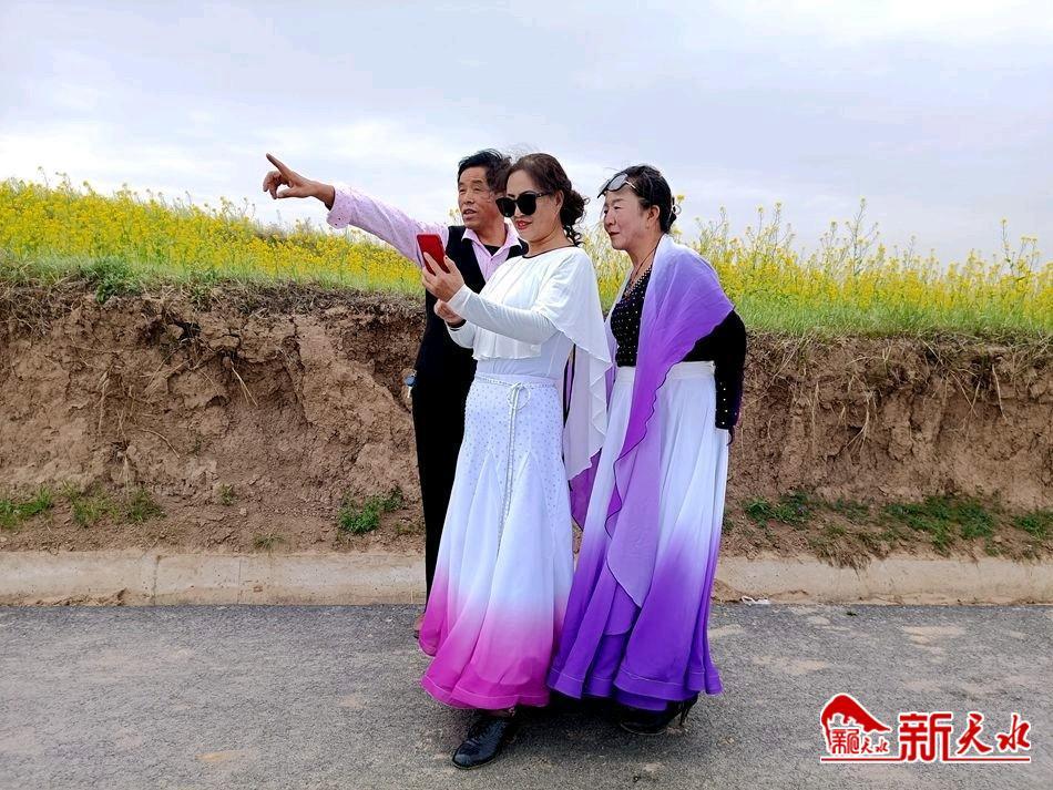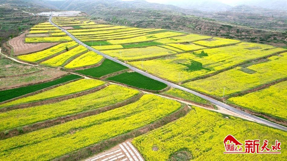 新天水讯【通讯员李榕 王永强 赵甲伟 陈淑敏】五月,正是踏青赏花好时节。清水县香怡南塬的油菜花进入盛花期,淡淡花香沁人心脾。清风拂过,连片的油菜花在田间跃动,迎着春风泛起金色的波浪。前来踏青观景的游客们不时驻足、拍照打卡,田园、花海、游人,构成了一幅和谐自然的田园春游图。