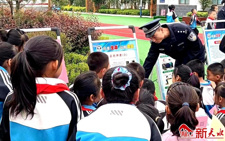 新天水讯【记者张彬霞】5月5日,秦安县禁毒办联合县关工委、王尹派出所深入王尹镇中心小学,开展以“健康人生、绿色无毒”为主题的禁毒知识进校园活动。