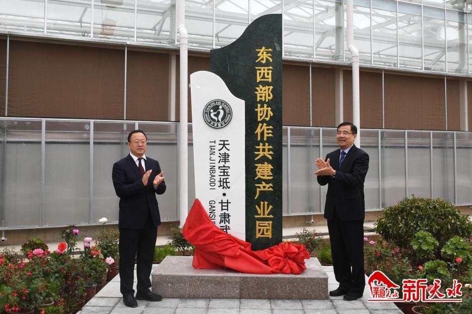 ▲毛劲松和贾义翔共同为天津宝坻·甘肃武山东西部协作共建产业园揭牌。
