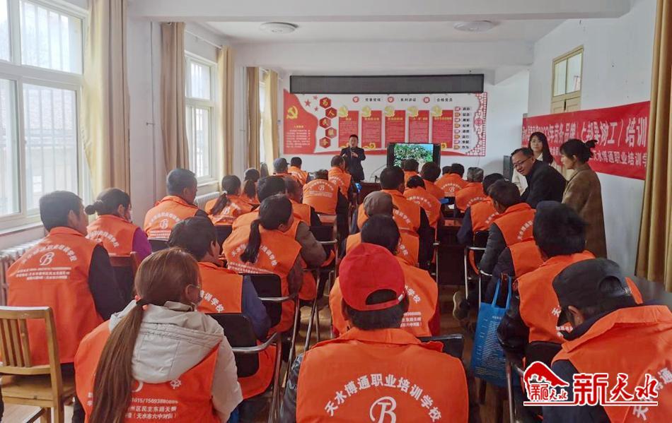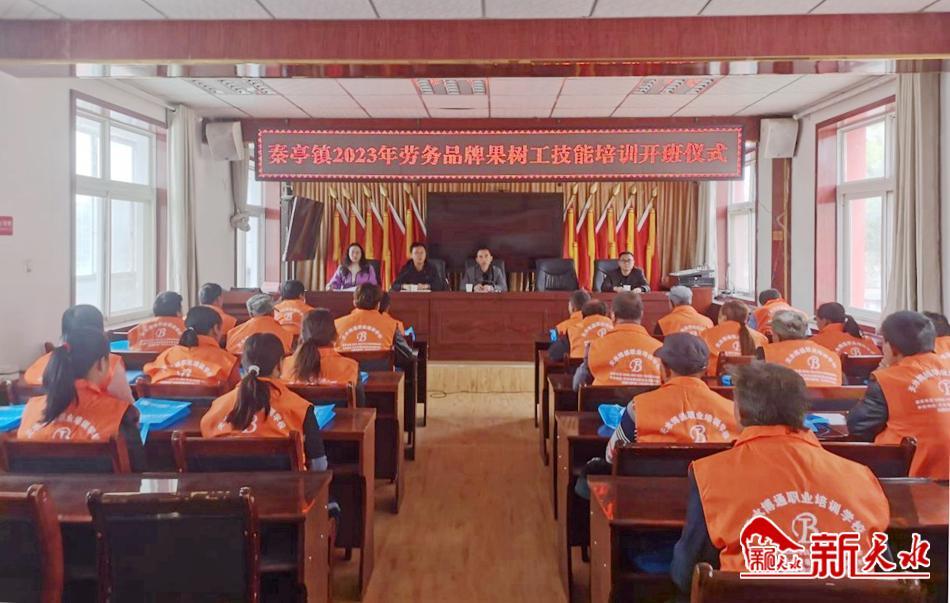 新天水讯 近日,由清水县人社局牵头,秦亭镇与天水博通职业培训学校联合举办的2023年劳务品牌果树工技能培训班开班。