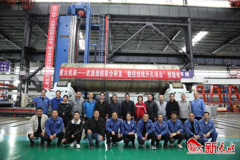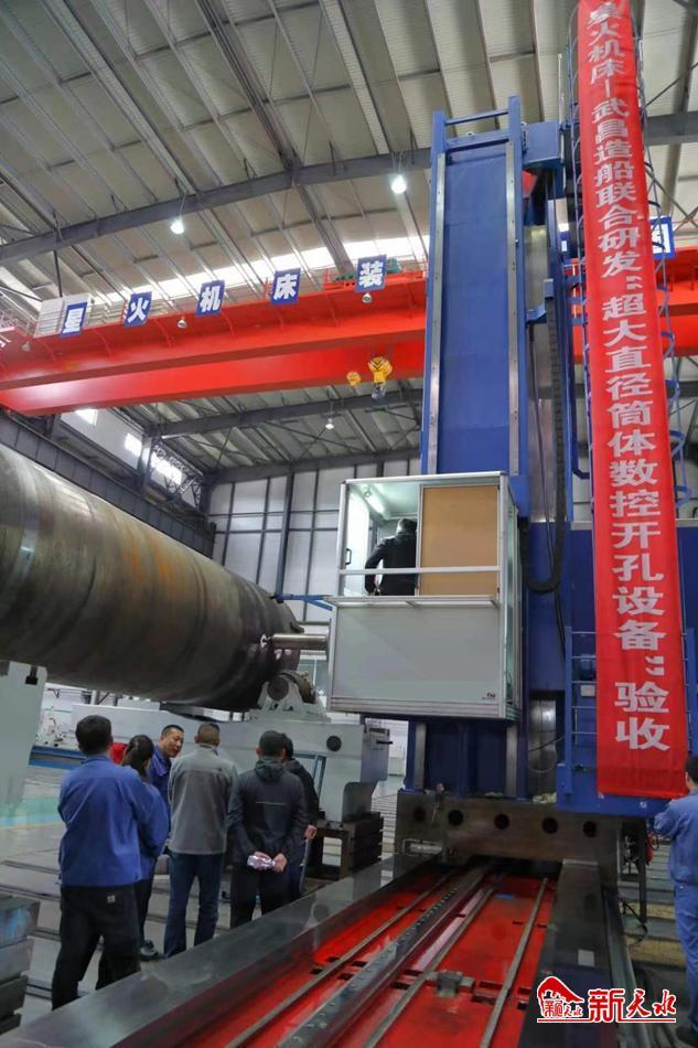 新天水讯 5月8日,由天水星火机床集团公司主导,联合北京邮电大学、武昌船舶重工集团有限公司研发的“CNCMTM-4-13000X250T超大直径筒体专用数控开孔设备”顺利通过预验收。